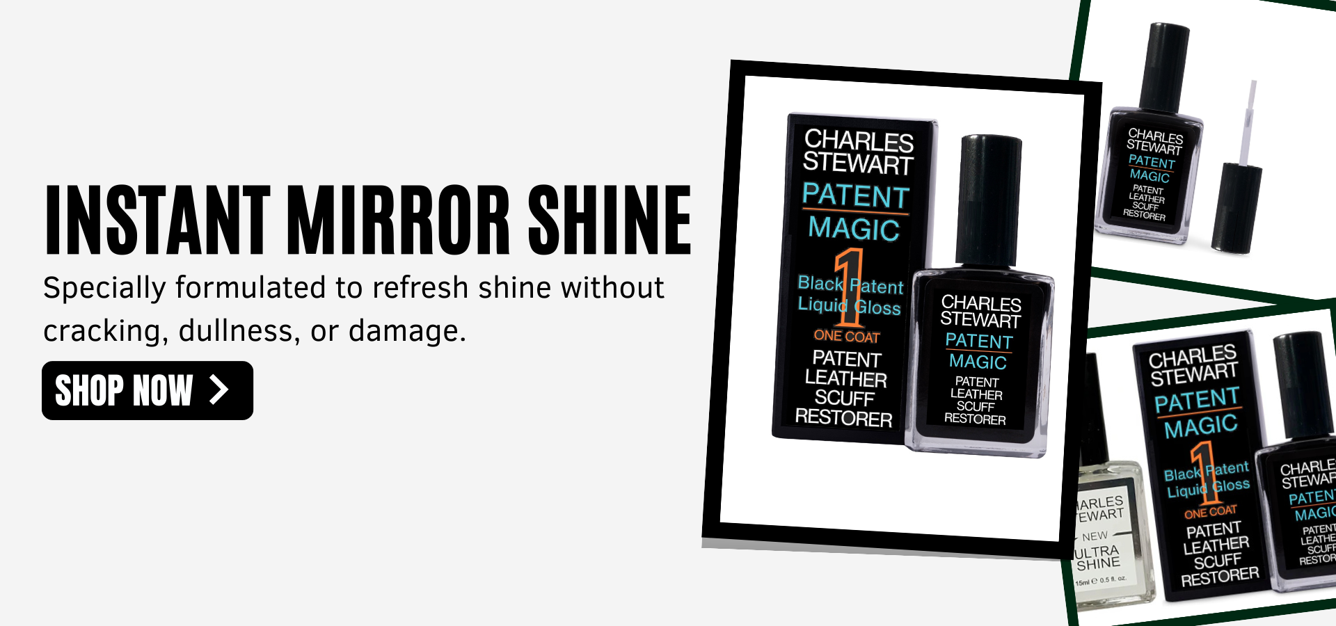Thousands of users trust Charles Stewart Patent Magic to revive tired, scuffed patent shoes with visible results.